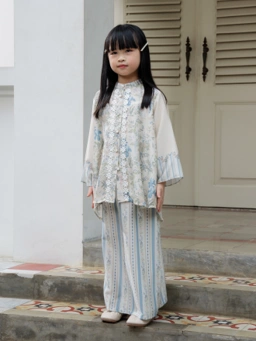 Set anak perempuan terdiri dari blouse dan bawahan rok yang manis dengan detail renda pada bagian badan depan memberikan kesan feminin dan stylish.