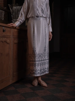 Rok dengan potongan Melayu klasik yang menghadirkan siluet anggun dan kesan elegan, cocok untuk melengkapi tampilan formal maupun semi-formal.