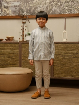 Material: Dobby Description: 100% Polyester Koko anak dengan desain simpel dan motif stripes yang serasi dengan versi dewasa. Potongan nyaman dan rapi, cocok untuk tampilan kompak keluarga saat Raya.