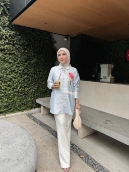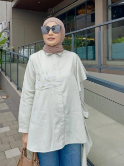 with this Erren shirt from @alezalabel, I show up more confidently—with the pale green color If you like it as well, you can always order at aleza.co.id