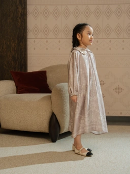 Material: Sateen Finished Description: 100% Polyester Dress anak perempuan dengan potongan simpel namun manis. Dilengkapi bukaan depan dan aksen beading di bagian kerah untuk tampilan rapi dan anggun.